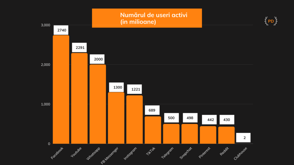 Cu toate acestea, Facebook rămâne platfoma cea mai utilizată, cu 2,74 milioane de utilizatori, Youtube este a 2-a platformă, cu 2,291 milioane si a 3-a este WhatsApp cu 2 milioane de utilizatori.